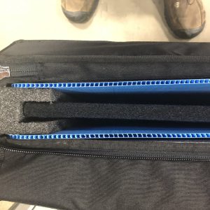 LD-Litemat.4S Protection Bag is made up of 2 compartments. 1st one protects the light itself in a foam rimmed compartment. 2nd compartment zippers open to show the large pocket for the grid, and 5 other pockets to hold other parts of the light. the second compartment keeps everything inside a protective plastic wall. Made with 1000D nylon, and 6mm corrugated plastic sections. CAN BE LOGO-ed.