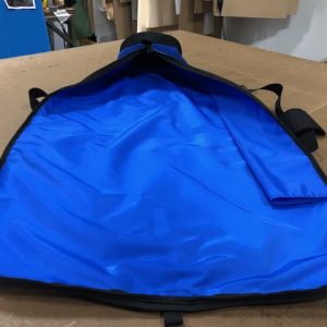 Double layer sling bag designed for use in Rental Houses. Reinforced back end, extra reinforced webbing on bottom to prevent wear from dragging. Internal Umbrella Pocket, Heavy Duty Webbing, Hand Wrap, Dense plastic stiffener bottom, #10 Nylon Zipper, MADE in USA